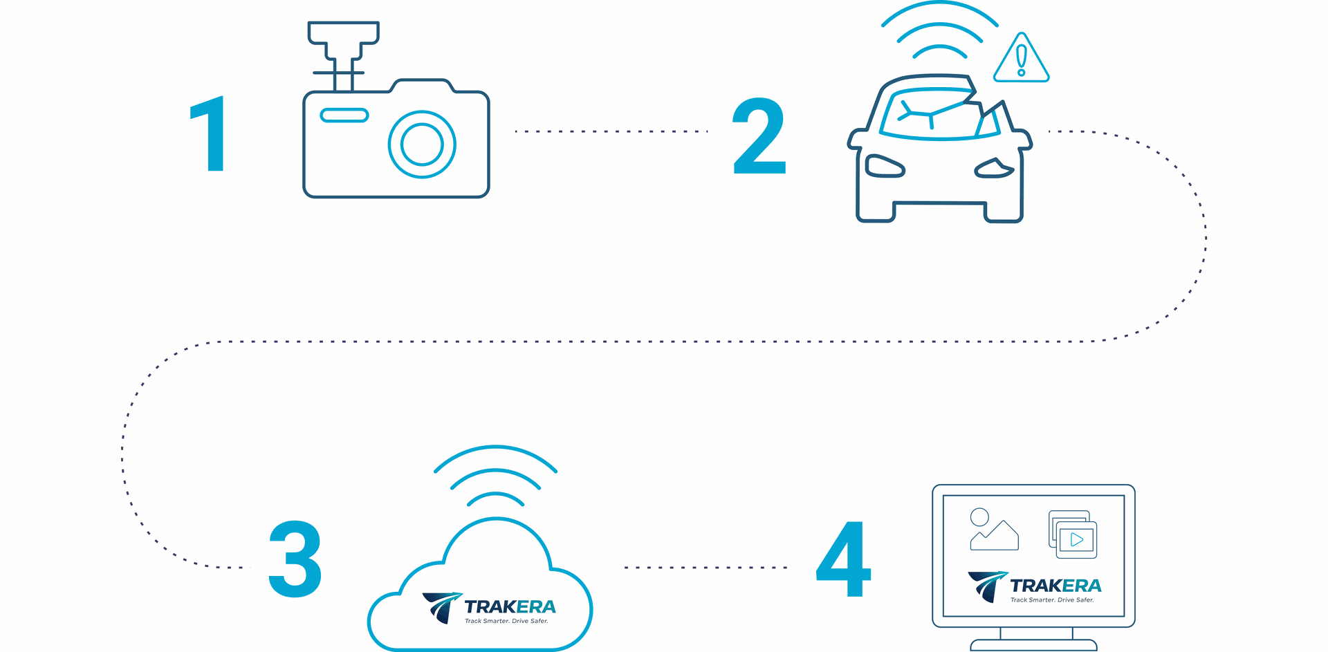 С високорезолюционно видео Trakera улавя всяко рисково събитие на пътя и около превозното средство. За допълнителна сигурност и защита от кражби, операторите на автопаркове могат да свържат до пет камери към едно превозно средство, за да наблюдават интериора, оборудването и други ценни активи в реално време.